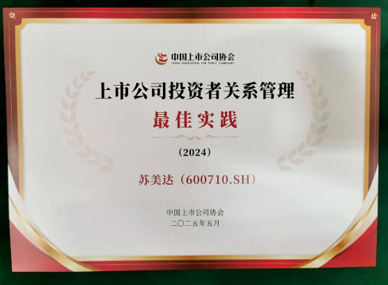 2025年05月13日5月13日,中国上市公司协会(以下简称“中上协”)在北京发布“中国上市公司2024年度投资者关系管理最佳实践”案例,苏美达凭借在投关管理、内容创新、股东回报等领域的优秀表现,成功入选最佳实践案例榜单。
