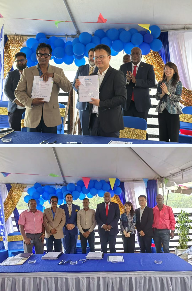 当地时间5月21日,成套公司与圭亚那电力与照明公司GPL正式签订圭亚那光储项目二期合同。圭亚那政府总理Mark Phillips、中国驻圭亚那使馆杨扬大使团队、泛美开发银行(IDB)圭亚那国家代表Iván-Alonzo Gaviria及当地媒体参与并见证了签约仪式。